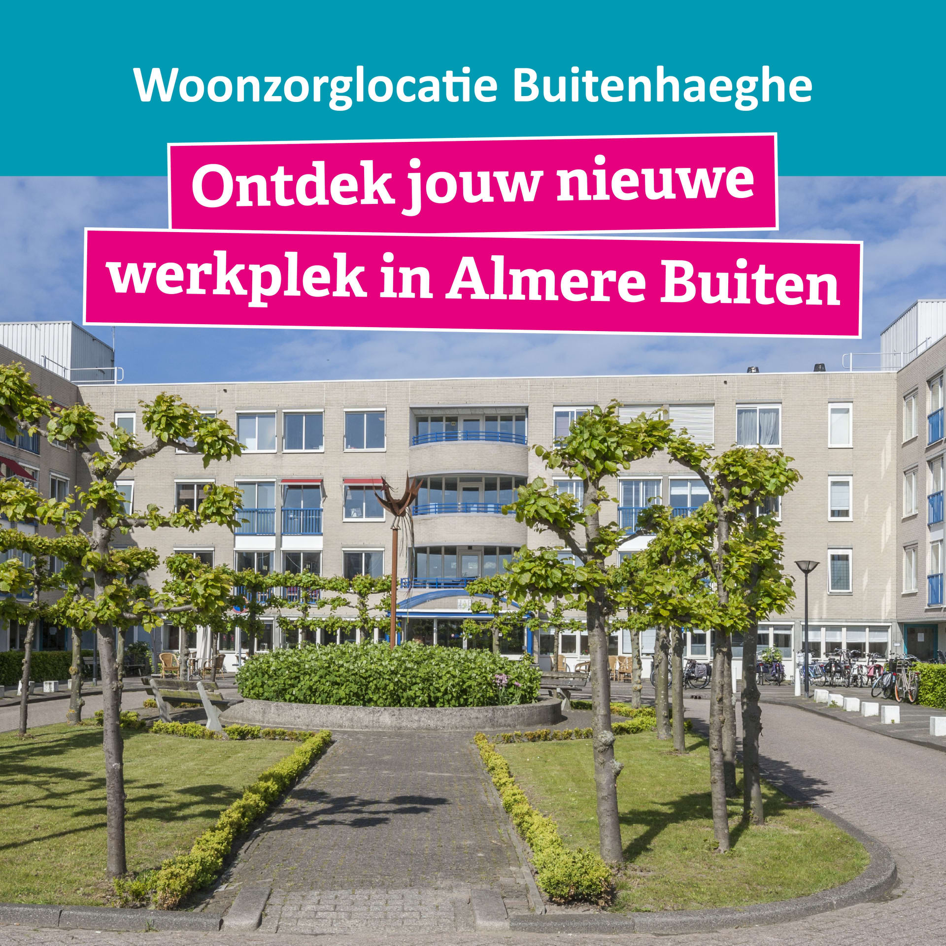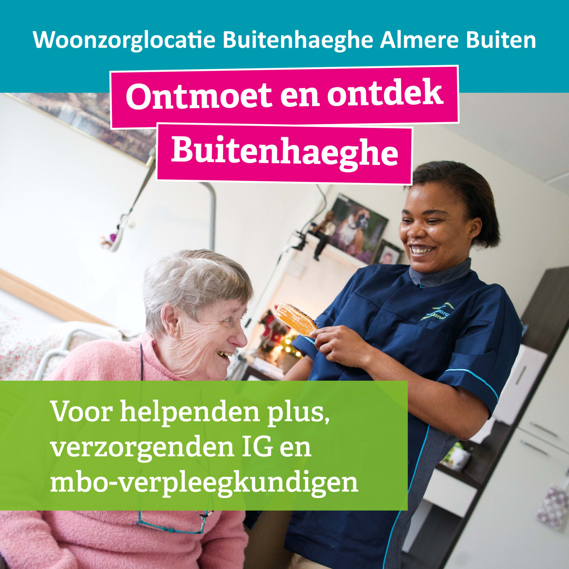 Buitenhaeghe is een woonzorglocatie voor mensen met een somatische en/of pg-zorgvraag in Almere Buiten. Woonzorg Flevoland vernieuwt en groeit. Daarom zoeken we mbo-verpleegkundigen, verzorgenden IG en helpenden (plus) die samen met ons bouwen aan warme en professionele ouderenzorg.